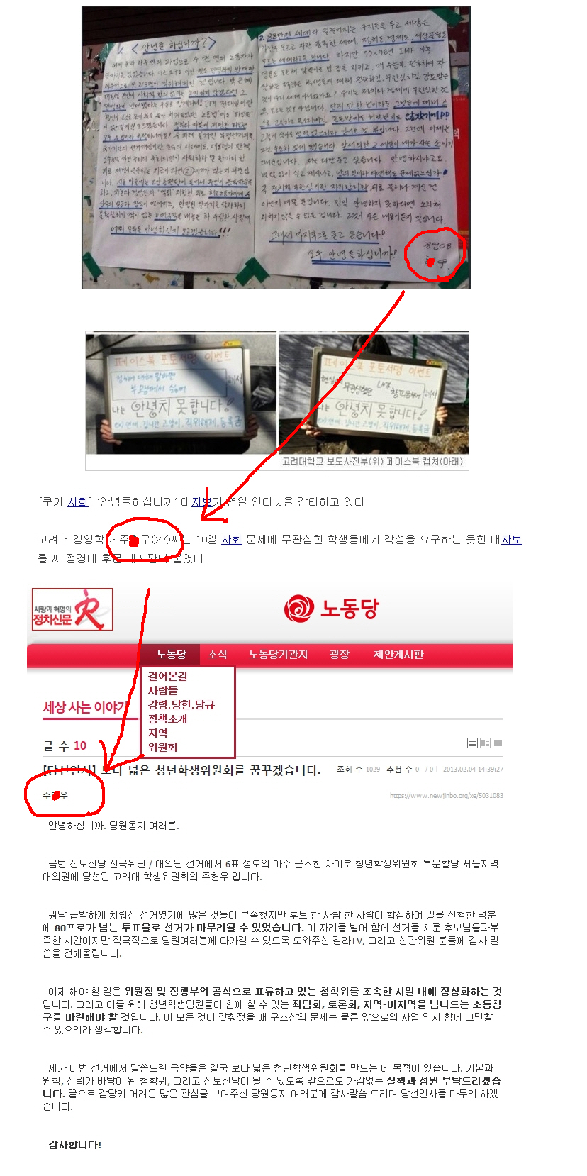 노동당은 사회민주주의를 기초로 하자나요. 그거에 바탕으로 생각을 표현하는게 왜 종북인가요? 그리고 저 대자보에 나온 내용은 정부에서 언론매체 통제하는 수준에 비교하면 그렇게 “선동”적이라고 보이지는 않는데요.