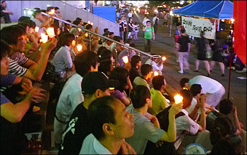 내내, 촛불을 들고 광장에 앉아 있던 사람들은 말이 없었다. 그저 영상만을 응시할 뿐이었다.